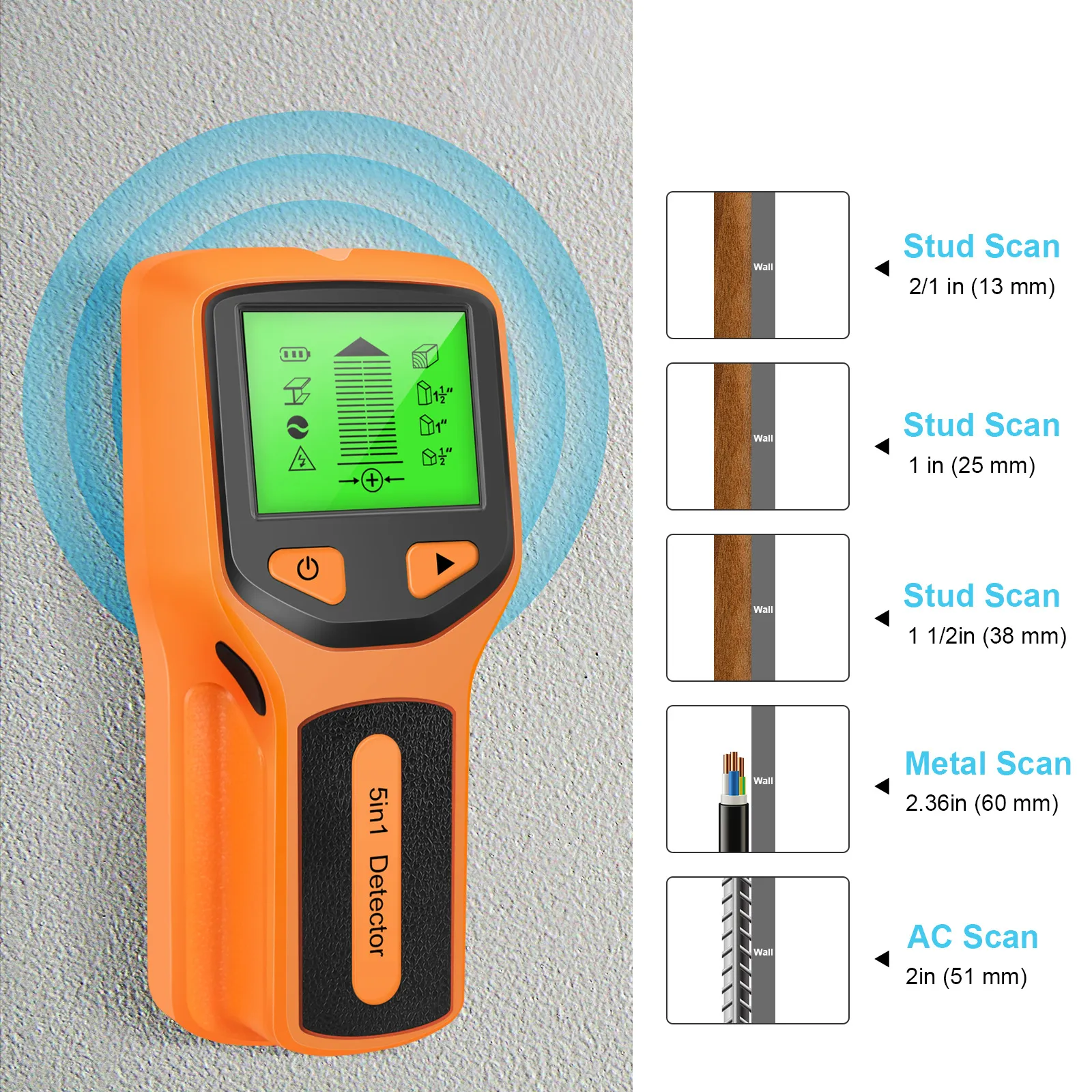 - 5 Scan Modes: Offers 5 precise modes for detecting hidden objects at different depths and materials.