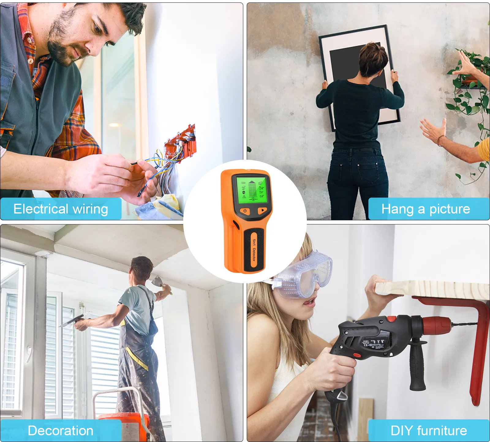 - Real-Time Electrical Wire Warning: Detects live wires in all modes, preventing accidental drilling into electrical lines.